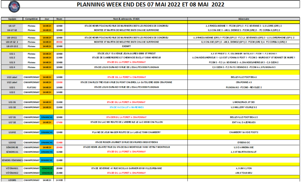Voici le planning du week-end !